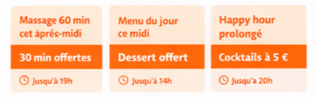 Un soin, une heure creuse, une coupe disponible aujourd’hui, une mise en beauté à un tarif privilégié, les offres bien-être à saisir avant les autres.